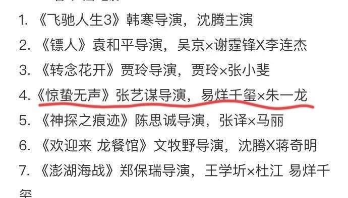 这样顶级的卡司配置与创新题材组合,让观众对《惊蛰无声》充满期待。毕竟张艺谋的春节档战绩太过耀眼: